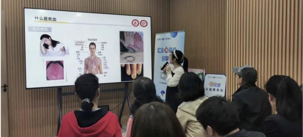 近日,在小区30号楼的党群服务站内,一场以“贫血”为主题的健康养生讲座正在进行,来自宝山中西医结合医院的血液专家结合PPT与实例向现场居民普及了贫血的原因、症状、如何治疗等健康知识,现场的居民认真听讲,时不时地仔细询问,大家都受益匪浅。