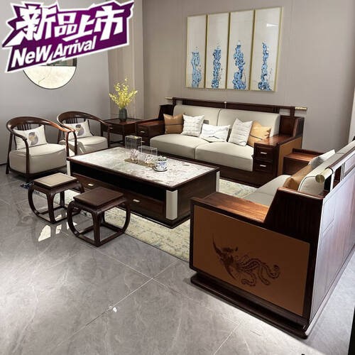 霖䄸衍的新中式乌金木真皮沙发则以其豪华的设计和优质的材料而著称。这款沙发主要面向追求中式家居风格的消费者,尤其适合传统文化爱好者。其采用的金丝檀木,具有极高的观赏价值和使用寿命,同时真皮材料的使用,保证了沙发的舒适性和耐用性。