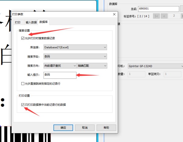 常常遇到需要(扫描枪)扫描一个条形码,自动从模板库中找到指定的标签模板以及从Excel表(或数据库)中找到对应的数据,再打印出来的场景需求。