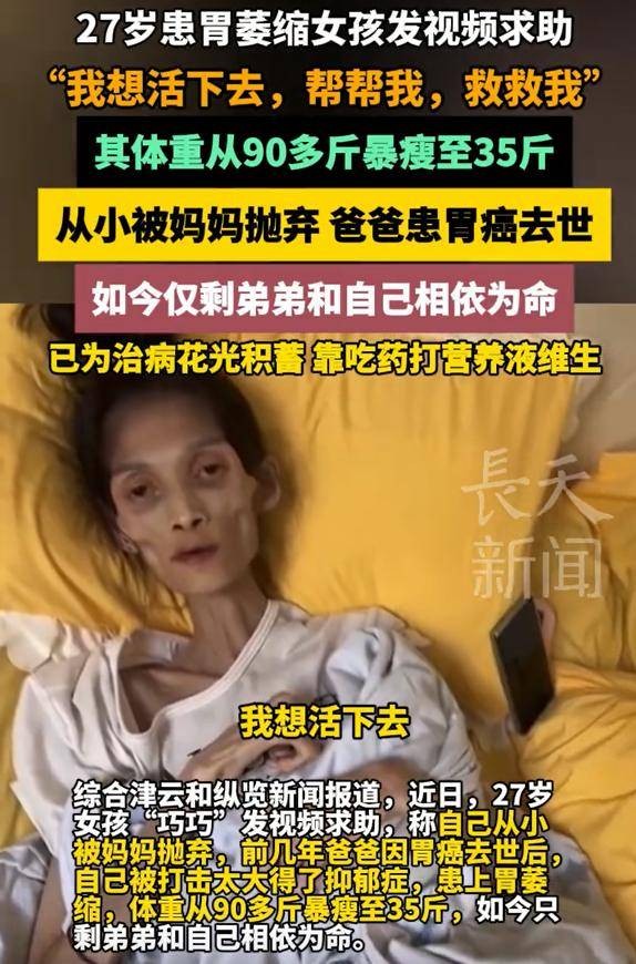 27岁女生患病瘦到35斤,被母亲抛弃、父亲癌症去世,生病前像明星