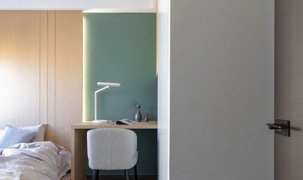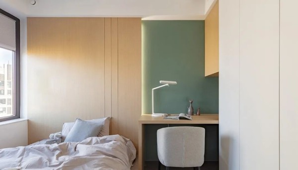女儿房间的整体风格干净素雅莫兰迪色系既能呼应整体的简约又能赋予孩子极具色彩感的空间