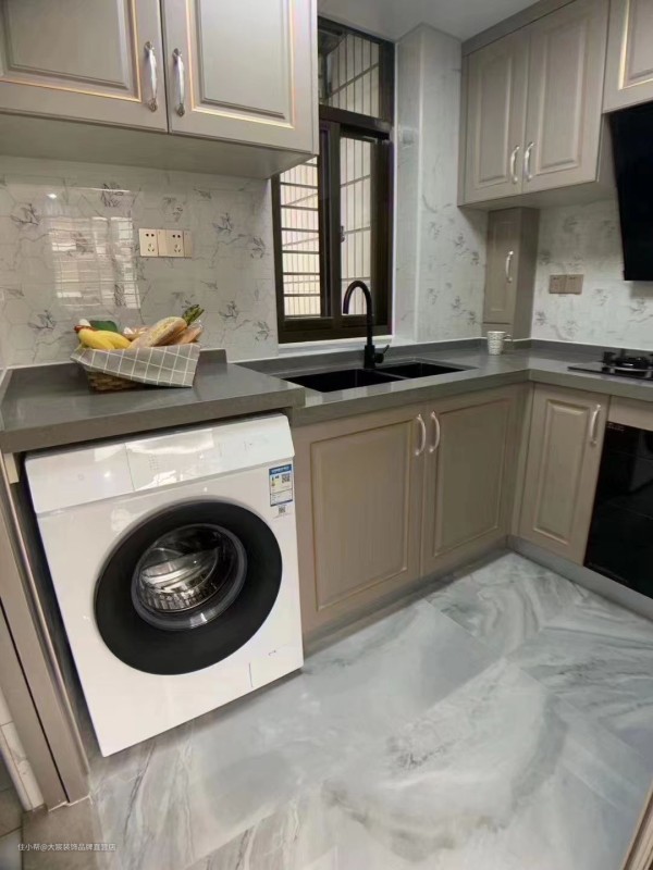 L型厨房动线分明,采用原木质材料最大可能的增加储物收纳的空间,洗衣机采用嵌入式丝毫不占用多余的位置,小小的空间可以轻松容纳三四个人一起下厨,其乐融融的一家人相处空间,更能拉进与家人的距离。