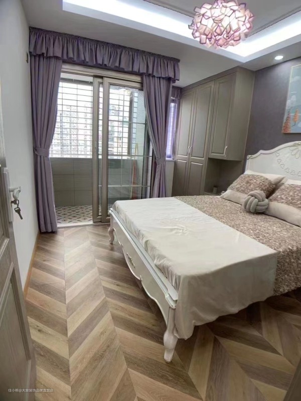 奶油风花瓣个性吊灯回归自然,崇尚原色韵味,创意设计与灯光搭配,兼顾时尚与创意,以创意造型点缀出灯光美的意境,在光的渲染下撩拨着我们的感官,体悟与众不同的质感生活。嵌入式的衣柜在床头中部位置留空,作为床头柜使用实行多用化,主卧还保留了小阳台采用透明推拉玻璃的形式,不影响采光的同时还保证了隔音。