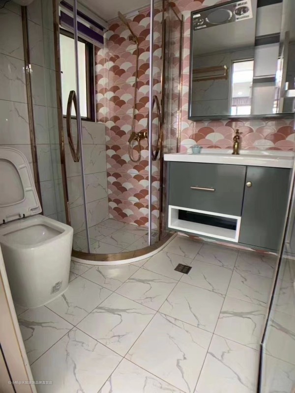 卫生间采用干式分离的形式,让整个空间更加的时尚舒适安全,圆弧型的淋浴房采用推拉的玻璃门作为隔断,防止淋浴是水花溅得到处都是。岩板的洗手盆柜组合不仅严重在线,还可以收纳日常需要的洗漱用品,保障空间的整洁舒适度。