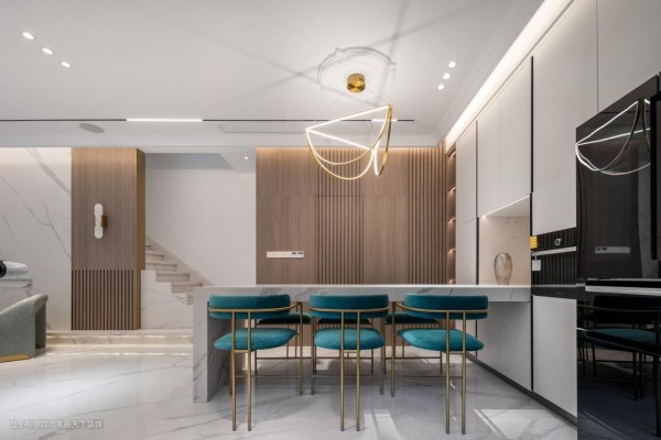 “轻”代表了一种无损优雅的舒适,“奢”代表了一种没有负担的精致生活,用极简的装饰元素重塑空间华丽的维度,像大理石、丝绒、玻璃、金属、水晶、镜面等等,还可以将其进行组合,金色+水晶,铜色+黑色等等,不会过于复杂却能增加空间的质感和层次。
