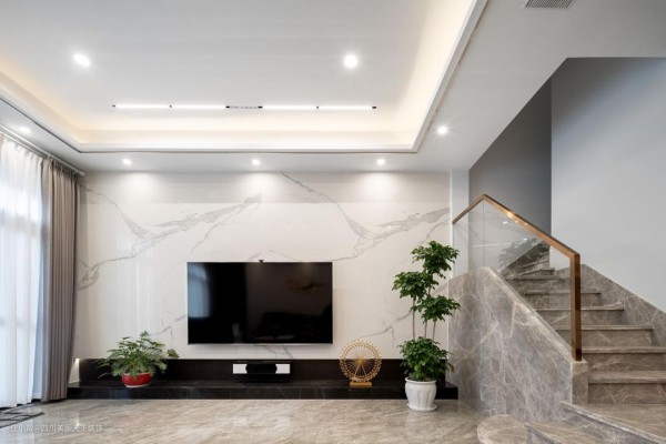 大理石+金属是轻奢风中最具CP感的,一个久经岁月沉淀,内敛贵气,一个自带复古气质,细腻精致,两者结合可以点亮整个空间,产生极具摩登感的视觉张力。