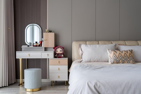 轻奢≠奢侈,不一定非要用张扬、华贵的色彩去堆砌,而是讲究一种低调的奢华、艺术的内涵,高级的中性色就能很好的将空间优雅的格调呈现,比如驼色、象牙白、杏子灰、奶咖等等。