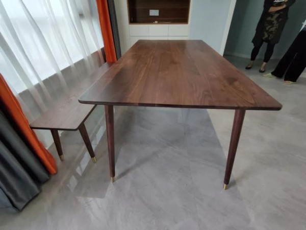▲胡桃木的餐桌与餐边柜格架。