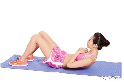 11、挺身举腿。上身向上挺起,同时双腿向上举起,手碰到膝甚至小腿,是将卷腹与收腹举腿同时进行。