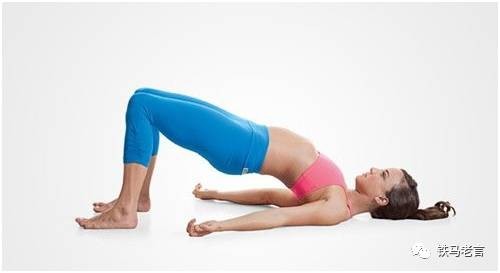 2、挺臀成拱桥。仰卧,小腿向臀部收,臀部挺起成拱形,开始双腿着地,一段时间后可以单腿着地。