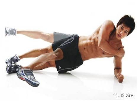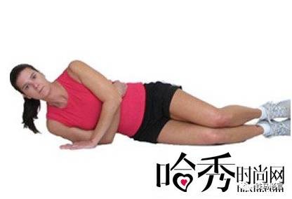 4、侧卧挺身。身体侧卧,一边肘支撑,上身向上挺起,肩离地。两边交替进行。