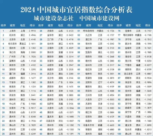 该报告显示:上海位居榜首,杭州位列第二,北京、哈尔滨、扬州分别位列第三至第五,海口、广州、淄博、南京和深圳进入前十位。本次排名打破以往人们心中刻板印象,展现出一些城市强劲发展势头,也凸显出我国城市发展的多元化。