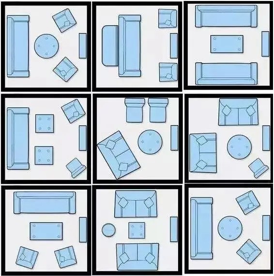 而这种组合,根据客厅户型和大小的不同,布局方式也相应发生变化。