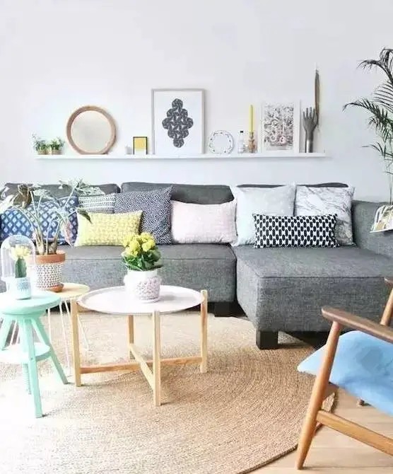 如果选择L型沙发,并不建议再搭配单人沙发,因为其实L型沙发足够满足家人或待客的日常需要。