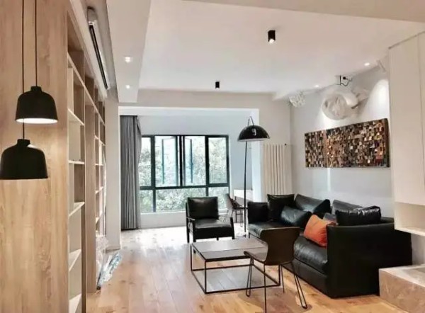 书柜或书架墙可以取代电视墙,也可以做成和电视一体的电视柜,充分利用客厅空间。