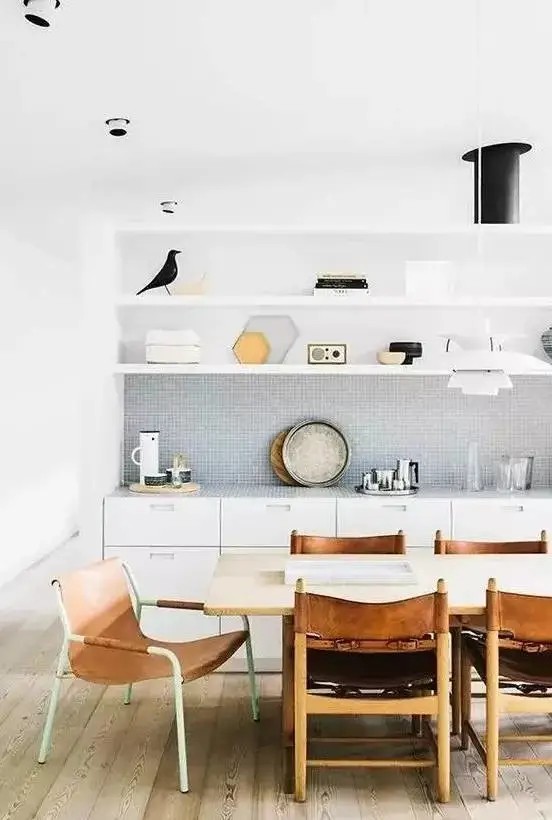选择一张宽大稳重的大方桌、几把舒适的座椅放在客厅。彼此相对而坐,或并肩而坐,就能开启工作模式。你有你的计划,他有他的工作,各自安静而踏实的拥有自我,也能随时看顾彼此。
