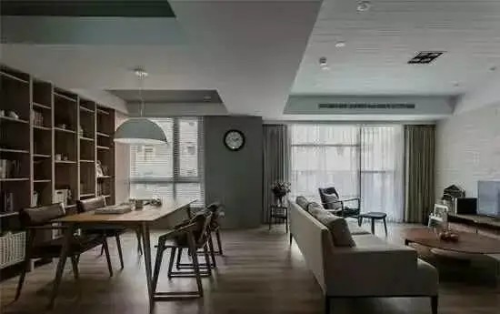 所以,客厅不一定非得是客厅。你家客厅根据家人需要,完全可以是开放书房、是办公空间、是餐厅的延伸、是对着窗外风景的大方桌操作台、是孩子们的娱乐空间···