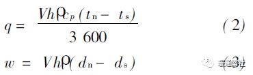 式中 Vx为新风机组送风量,m3/h;Q为空气密度,kg/m3;hs 为送风状态点S 的比焓,kJ/kg;hw为室外状态点W 的比焓,kJ/kg,为安全起见,取当地夏季空调室外设计状态点。