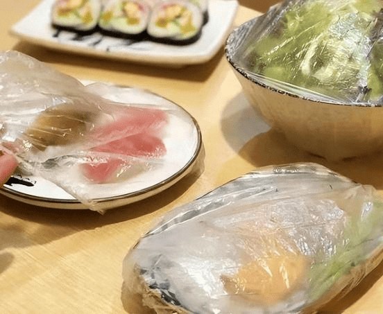 虽然被它的外形逗笑了,但买回来以后,我发现它竟然意外的好用。这款保鲜膜套的材质是食品级的PE材质,与浴帽有所不同,但和保鲜袋一样可以直接接触食物。使用起来简单又方便,解决了保鲜膜不好拉扯的问题,难怪这么受欢迎。