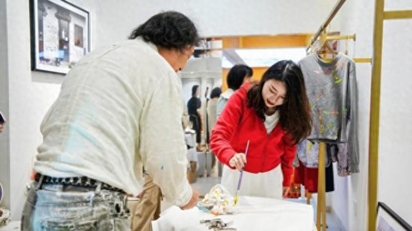 另一大亮点 “衣皱共创追痕” 同样备受青睐。市民赵女士带来了一件穿了10年的棉质T恤:“这是我创业那年买的,衣身被妹妹不小心烫了个洞也舍不得扔,现场参与者沿着破洞口的痕迹用不同颜色涂抹,现在这件衣服不仅换新,还藏着我和妹妹的共同记忆”。她说。