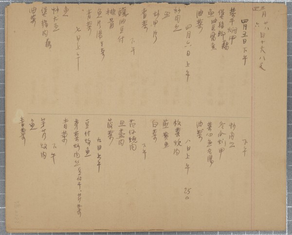 在展厅中,观众可以看到鲁迅家用的蓝花汤碗。据内山完造回忆,此套碗原为内山家用餐具,当年内山夫妇赠送鲁迅菜肴时一并赠予。而鲁迅家用菜谱则是重点展品之一。这一菜谱为许广平记录,前三页为八只菜的配料和烧法,其后记载每日菜谱和菜价。