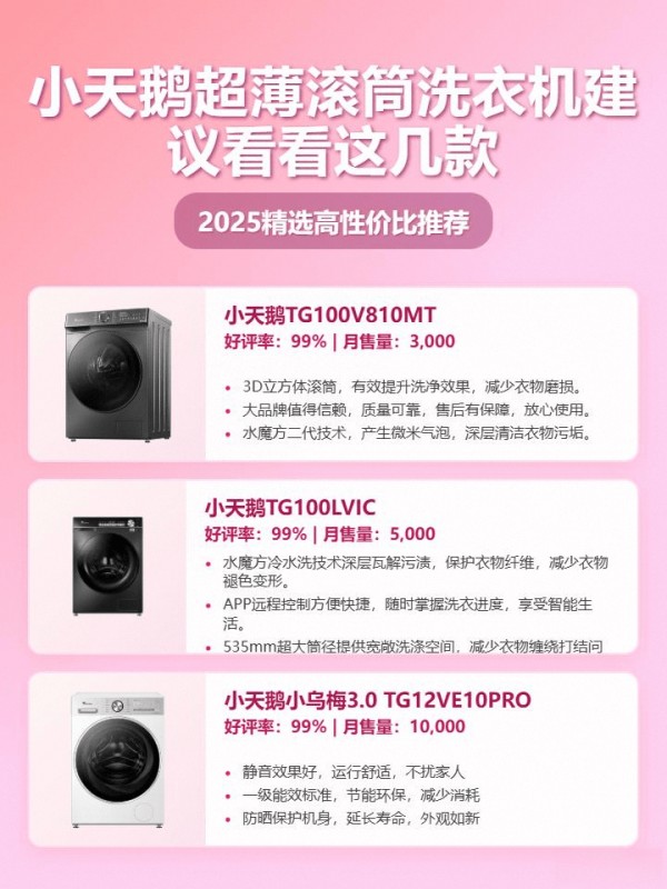 2025年小天鹅超薄滚筒洗衣机选购指南:10款高性价比型号推荐,助你轻松选购!