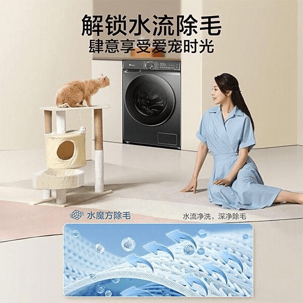 这款洗衣机最特别的在于它的水魔方技术,能够冷水洗涤,减少衣物褪色和变形,特别适合洗一些比较娇贵的衣物。还有净扯除毛洗功能,家里有猫猫狗狗的,再也不用担心衣服上沾满毛了。