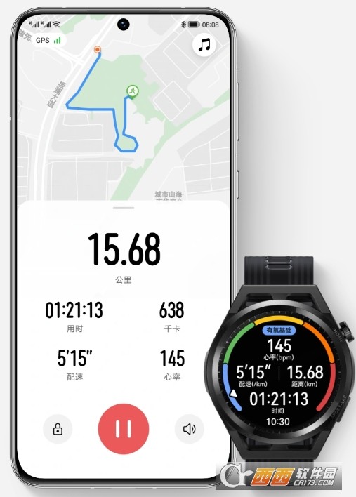精准低功耗计步,跑步轨迹、心率、步频、配速等运动数据一目了然。