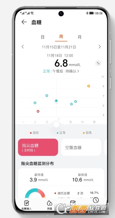 健康数据——》用数据和图表读懂你的健康。目前已经可以支持血糖,血压,体重,运动,睡眠等健康指标的采集和显示:
