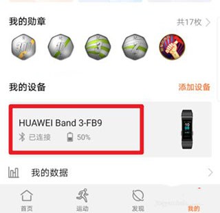 2、点击进入后,在我的设备中,我们点击华为手环3设备进入后台管理。