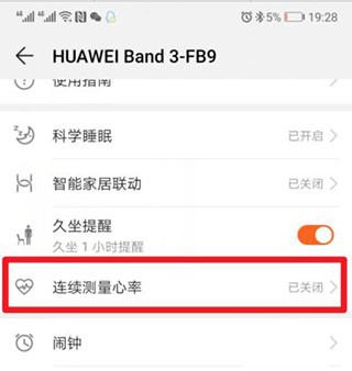 4、进入后,我们将页面顶部的连续测量心率的开关打开。打开后,华为手环3就会连续测量心率。