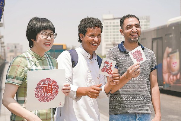 今年6月,周冬梅带着浦城剪纸到埃及参加文化交流活动。(受访者供图)