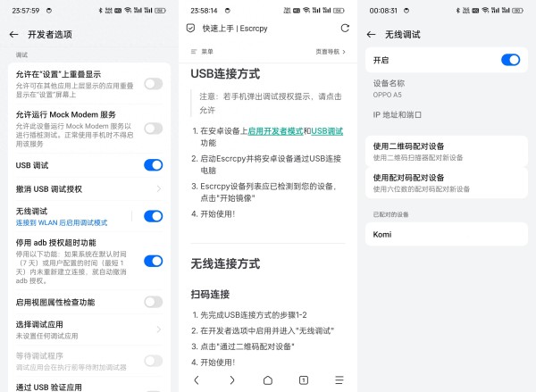 1.安卓手机需开启开发者模式并打开 USB 调试