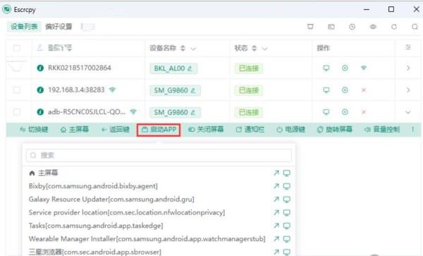 3.这时 Escrcpy 设备列表应该已经检测到你的手机,点击开始镜像。