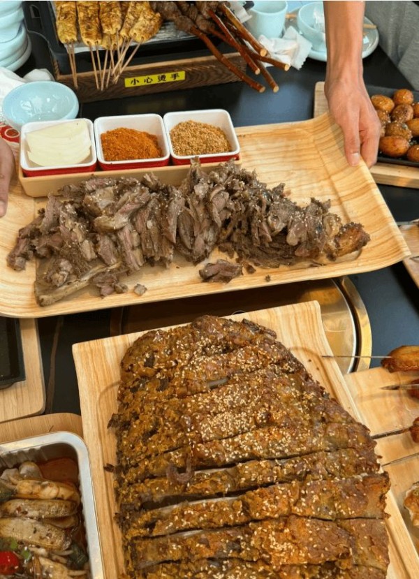 内蒙古博物院的"远古世界"展厅里,猛犸象化石与小李讲述的冰河世纪故事让孩子们瞪大了眼睛。而在"草原风情"展区,她示范蒙古包搭建技巧的灵活身手引来游客围观。中午的格日勒阿妈奶茶馆里,咸奶茶搭配奶皮子的绝妙滋味,让我们理解了"宁可三日无粮,不可一日无茶"的草原谚语。逛塞上老街时,小李像本地美食雷达般带我们解锁了隐藏美味:巷子深处的羊杂碎汤配焙子,皮薄如纸的羊肉烧麦,还有会爆汁的烤腰子,每样都是人均20元就能获得的幸福感。
