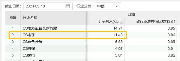 资金面上,昨日电子板块获北向资金净买入11.4亿元,高居30个中信行业的第二位,“聪明钱”或看好电子板块后市表现。