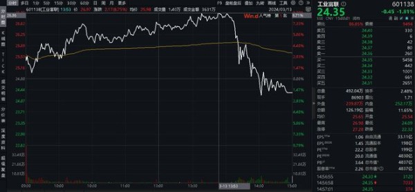 昨日(3月13日)AI产业链涨势亮眼,工业富联午后一度涨超8%,股价创历史新高,但下午市场传言,“工业富联今晚出业绩,可能低于预期,H800没出货,且苹果销量下滑”。受消息影响,工业富联跳水翻绿,收跌1.81%。