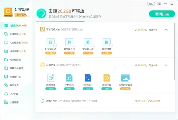 软件界面设计友好,操作起来很顺手,扫描结果分类清楚,很容易找到要清理的文件。