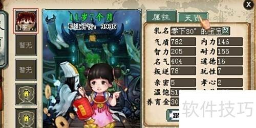 3、 遇到乞丐时,对方索要360点养育金可获得约50点道德值,相当于用养育资源换取道德提升。然而,若养育金不足,可用200点通宝代替支付,同样获得道德加成,且不消耗任何行动次数。从资源利用角度看,使用通宝更为划算,能有效保留养育金用于其他关键培养环节,因此建议优先选择通宝完成该事件。当然,若玩家不愿支出,也可选择忽略,不会产生负面后果。上述七类事件中,前四项主要增加亲密或孝心值,第五项增加养育金,第六项无实际作用,第七项即乞丐事件的具体策略如前所述。值得注意的是,孩子的成长基于真实时间推进,无论是否在线,只要启动成长流程,时间便会持续累积。即使下线或暂时忽视,孩子仍会正常发育,不会因暂停照料而退化或变为废柴状态。若操作失误,可随时撤销,不会留下任何不良影响,系统允许自由调整培养路径。
