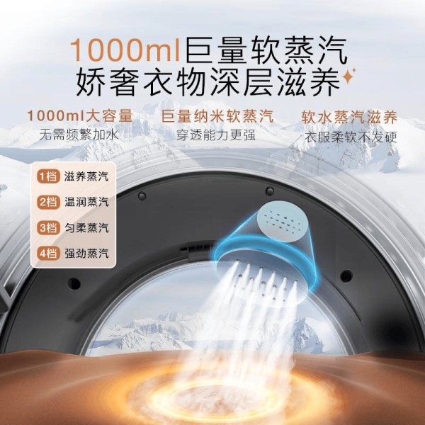 创新柔护蒸汽技术:配备奢护软蒸汽系统,能够温和去皱并保护衣物,保持其原有质感。经过特殊处理后,尤其适合珍贵面料,让洗护效果持久如新,延长衣物的使用寿命。