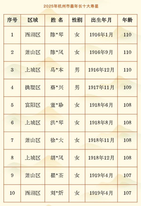 最近,杭州市民政局公布了最新统计数据:截至2025年9月底,杭州共有1929位百岁老人,其中最长寿者已达110岁!除了遗传和医疗条件,他们究竟有哪些共同的长寿秘诀?为此,当地曾特地研究分析了402位长寿老人的生活习惯。原来做到这4点,你也能活过100岁。