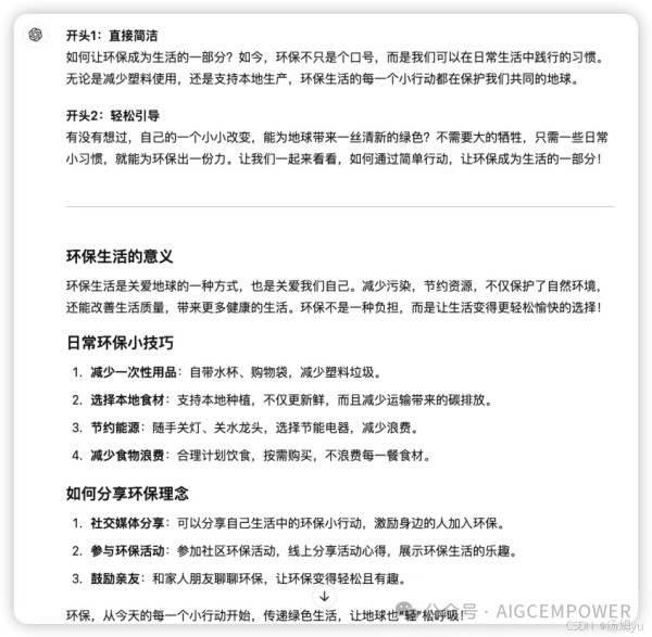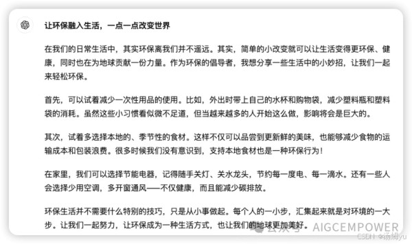 生成出来的内容,不能说有问题,也不能说完全正确,但是由于缺少具体要求,容易导致AI生成内容偏离预期,无法有效传播环保生活理念。