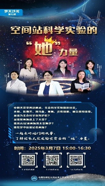3月7日,中心举办“空间站科学实验的‘她’力量”主题科普直播沙龙,邀请中国科学院生物物理所参与空间站果蝇科学实验的李岩研究员及团队成员,与中心参与相关实验的三位女性科研人员一起,向网友分享参与国家太空实验室空间科学实验的心路历程以及科研成果。