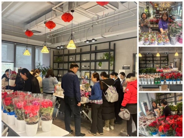 图3:中心妇委会为女职工送鲜花盆栽送祝福