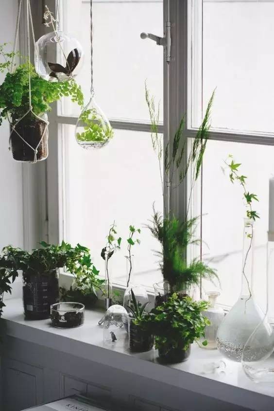 搭配:选择合适的植物,配上精美的花器,或将植物摆在窗前,或将植物挂在窗边,为室内打造美美的小花园。