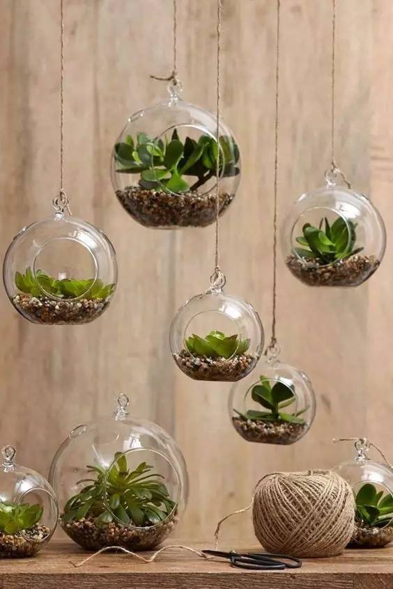 1、选择和空间合适的植物大小和花器,因为是悬挂在空中,所以花友们可以多选择一些适合垂吊的植物,比如绿萝、吊兰等,更加的飘逸灵动。