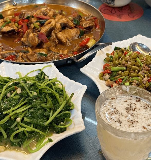 在遇龙河吃的啤酒鱼,燕子又帮我避坑:“别去景区门口的‘啤酒鱼连锁店’,这家是渔民开的,鱼是当天从遇龙河捞的,新鲜还不贵”。老板做的啤酒鱼是不辣的,鱼肉鲜嫩,汤汁浓郁,我配着米饭吃了一大碗,还不用花高价。