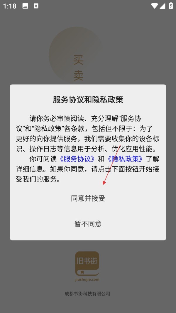 1、下载安装完成后进入,需在用户协议和隐私政策界面点击同意,接受相关条款后才能进入应用。