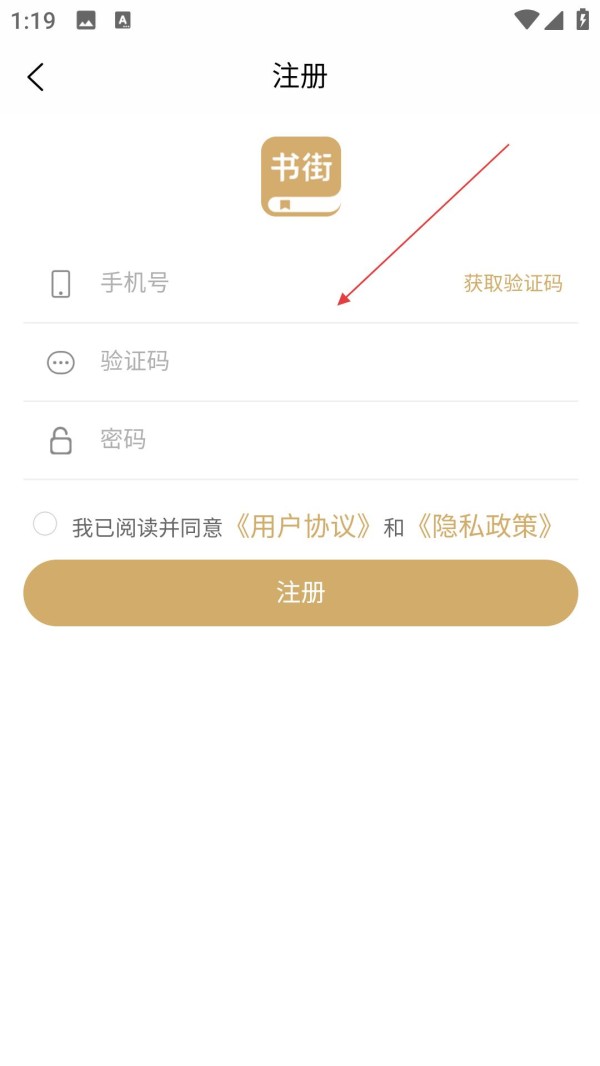 3、在注册页面,完善资料,勾选协议,完成注册,进入旧书街,发布旧书、浏览书摊,参与交易。