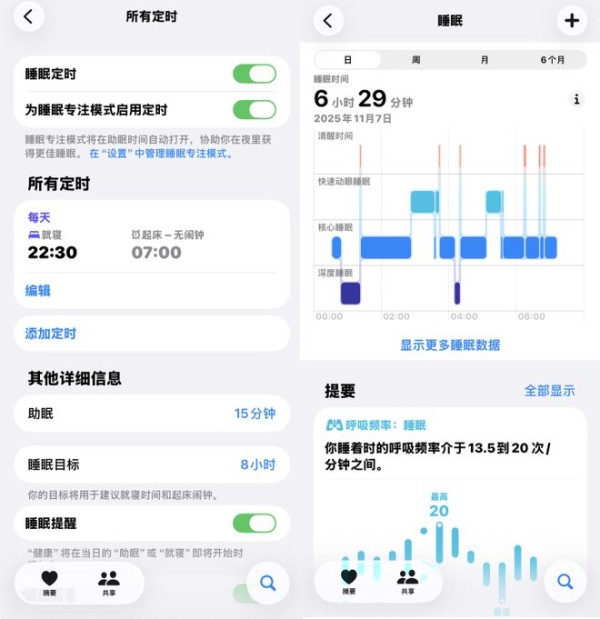 Apple Watch Ultra 3的睡眠唤醒功能就针对性解决了上述问题。设置睡眠计划后,手表会在设定时间通过渐强的震动和音量唤醒用户,避免了传统闹钟突然响起造成的惊吓感,充分彰显了苹果的人文关怀。这种温和的唤醒方式能够显著改善起床体验,减少起床气,是我今年上半年缺少苹果手表时,最为怀念的功能之一。